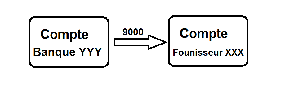 Considérons que l'entreprise a payé son fournisseur (Fournisseur XXX) et que, pour cela, elle a établi un chèque à partir de son compte bancaire (Compte Bancaire YYY)